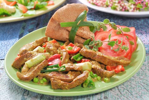 تُخلط "اللبنة" أو القشدة الحامضة جيدا مع اللحم البقري ثم تُضاف لشرائح الكبد والبصل ويُترك المزيج لينضج على نار منخفضة لمدة 30 دقيقة ثم تُضاف البازلاء الخضراء مع الفلفل الحلو والبصل الأخضر ويُقلب المزيج لمدة 1 دقيقة ثم يُغطي ويُترك على النار لمدة ثلاث دقائق.